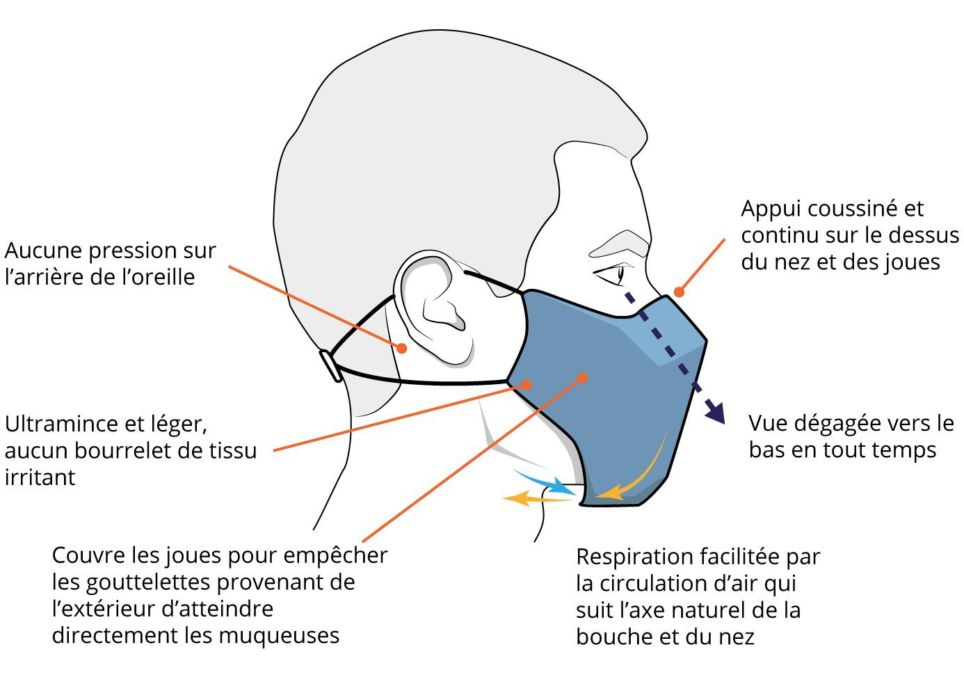 Respirabilité optimale pour port en continu (4 h et +)