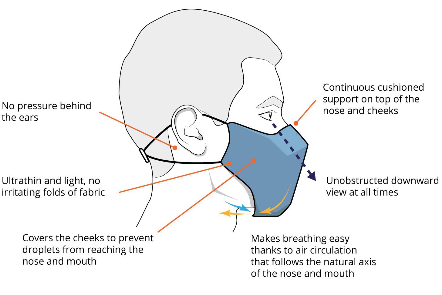 Does not fog up glasses, does not impede speech
